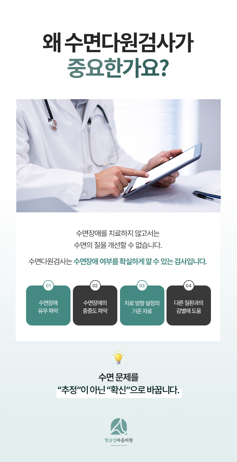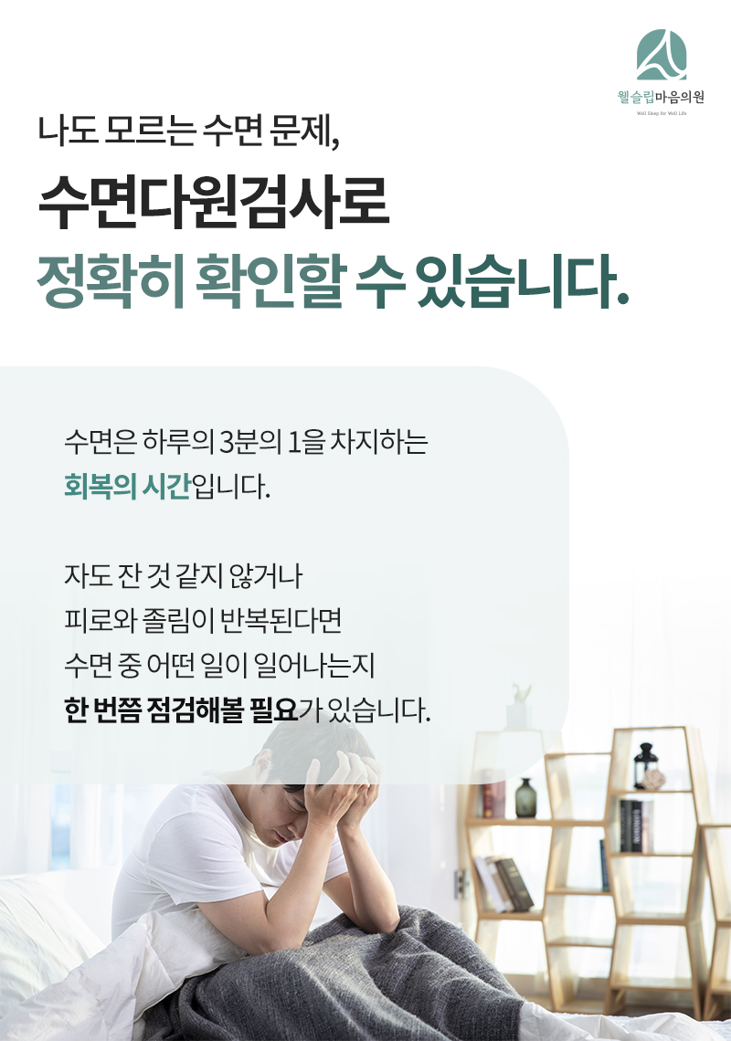수면다원검사를 통해 정확한 진단을 받고, 적절한 치료를 받으면 수면의 질을 개선하고 건강한 삶을 유지할 수 있습니다. 수원 지역에서 수면 문제를 겪고 있다면, 수면 전문 병원을 방문하여 상담을 받고, 수면다원검사를 통해 정확한 진단을 받아보세요. 건강한 수면은 활기찬 일상을 위한 첫걸음입니다.