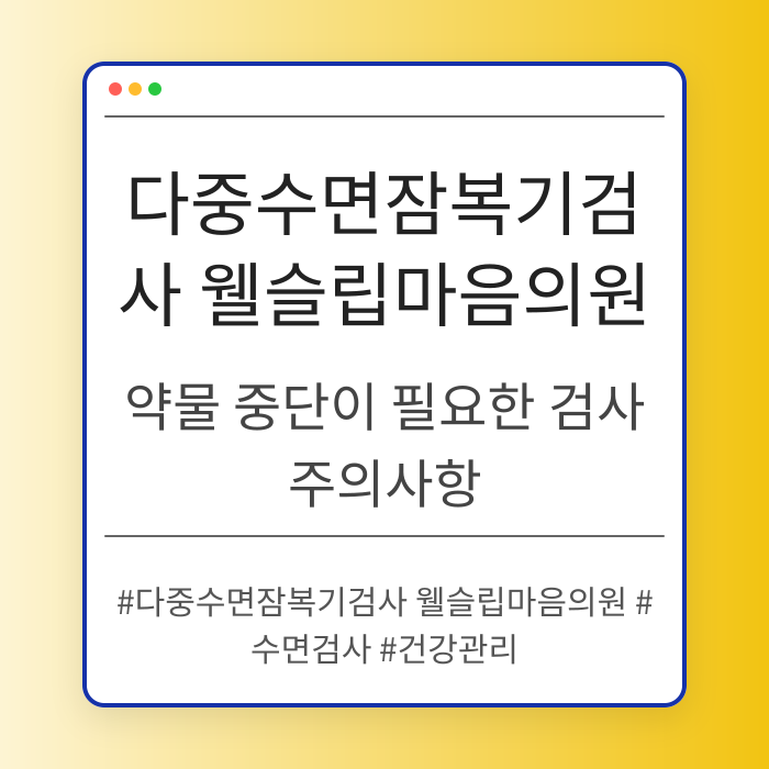 다중수면잠복기검사 웰슬립마음의원는 수면의 질을 평가하는 중요한 검사이지만, 약물 중단이 필요한 상황이 있습니다. 본 글에서는 검사 전후 주의사항과 약물 중단의 필요성을